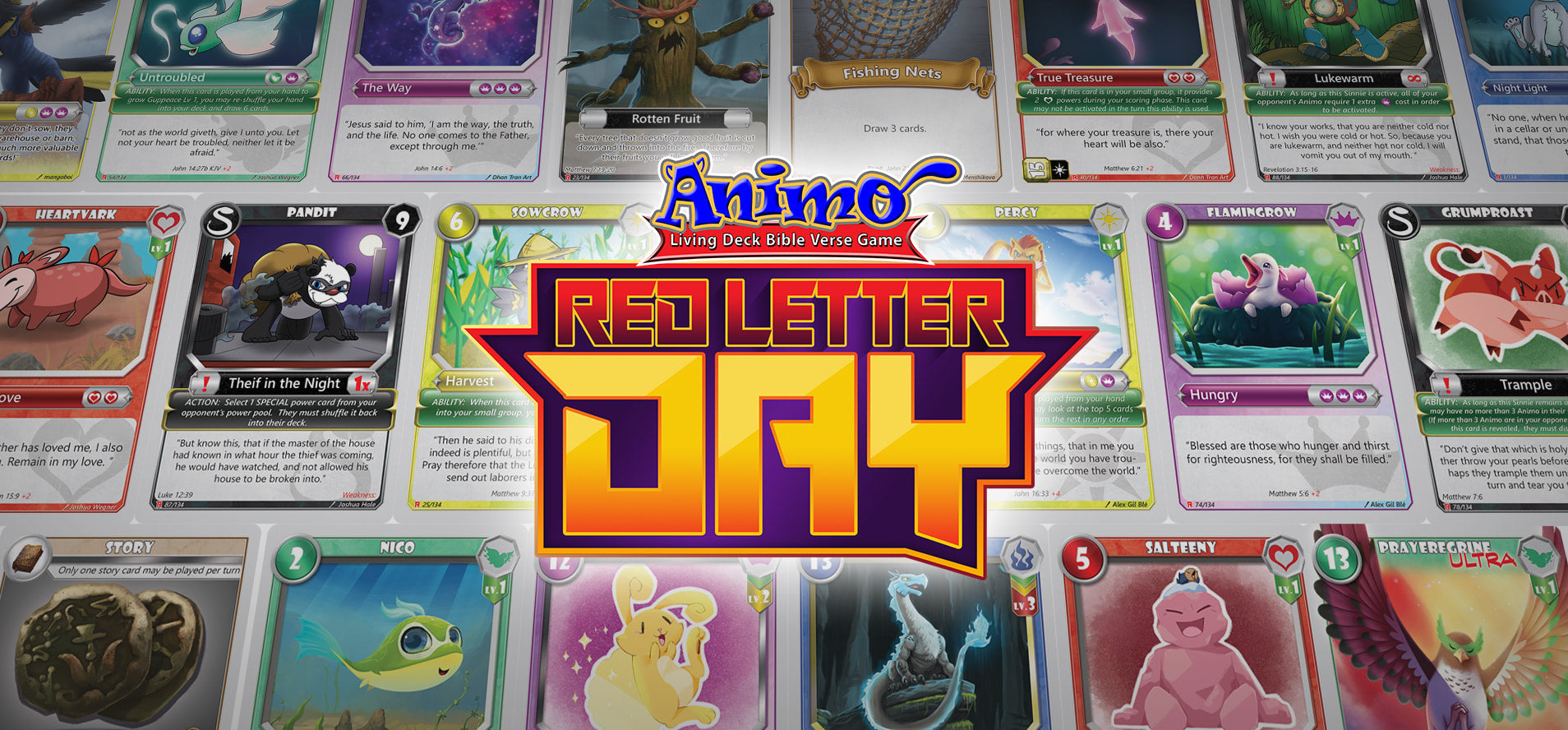 This expansion features all-new collectible cards, including story cards, characters, and powerful gameplay elements. With a mix of holographic foils, full-art alternates, and unique abilities,Red Letter Dayoffers both engaging strategy and meaningful Scripture-based collecting.